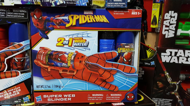 До набору входять: бластер, що кріпиться на зап'ястку, рукавичка Людини-павука, балончик із "рідкою павутиною", що застигає на льоту та балончик для води.